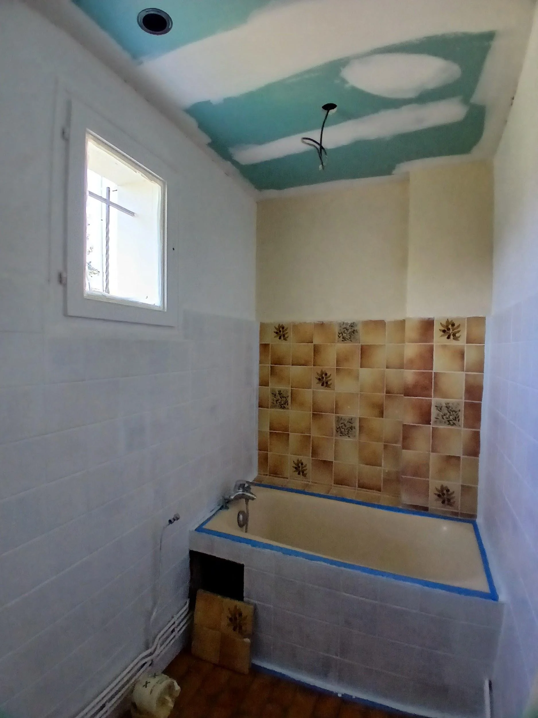 La salle de bain, notamment, présentait : des revêtements datés, une implantation peu fonctionnelle, un encombrement visuel important, un manque de lumière